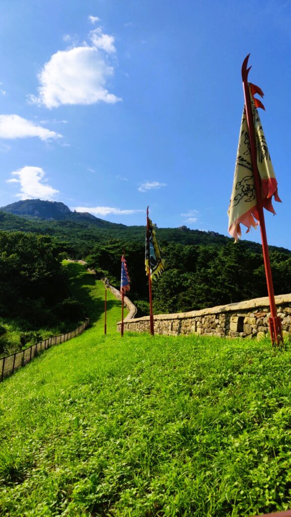 Fortress with flags while hiking